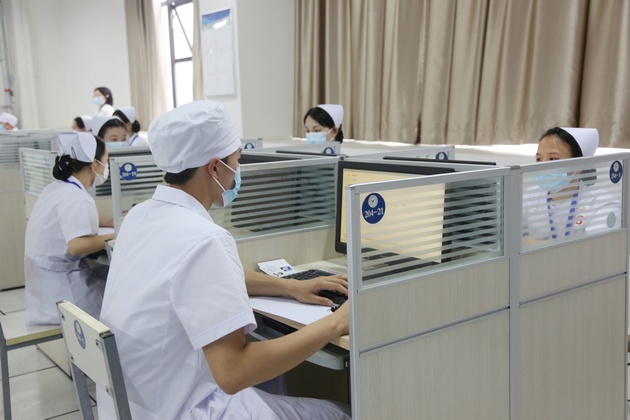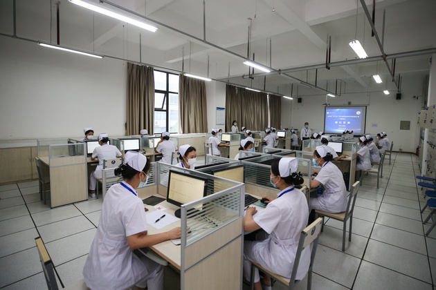 本次大赛历时两天,设置了理论竞赛与技能竞赛两大赛项,理论竞赛采用人机对话考试形式,技能竞赛分为“呼吸心跳骤停患者救护”和“脑猝中气管切开患者气道护理”2个赛道。主要考核选手理论知识、临床思维、实践决策和团队协作能力。在技能竞赛赛项,56名参赛选手依据临床案例,实施了心肺复苏、心电监测、静脉输液和气道湿化、翻身叩背、吸痰等临床技能操作。选手们将比赛当作交流技艺、提高技能的平台,同学们严肃的态度,严谨求实的作风,充分展现了白衣天使的风采,也体现了新时代对职业教育高素质护理人才的要求。