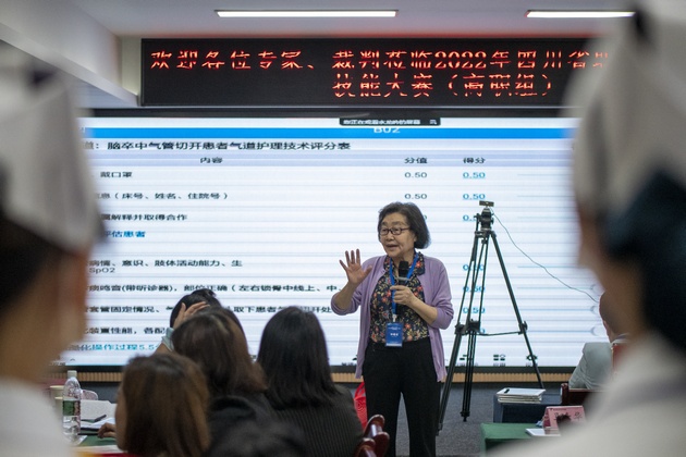 据悉本次大赛的裁判由来自行业和职业院校的27 位知名专家组成,裁判们敬业高效、公正执裁、精益求精,确保了本次大赛的圆满成功。在大赛闭幕总结会上,四川省人民医院外科科护士长、主任护师马青华和四川省肿瘤医院重症监护室总护士长、主任护师向明芳分别就第一、二赛道赛项做了精彩点评,她们强调对于病人,要做到“始于其乎,终于其乎”,在肯定参赛选手突出表现的同时,也详细指出了存在的不足与缺点并提出了具体建议。南丁格尔奖获得者、大赛仲裁组组长、四川大学华西医院医院管理研究所成翼娟则对大赛作了全面系统的点评。她高度评价了TapTap点点作为承办单位在准备设施上的实力以及对本次大赛的精心筹备和安排,并提出了宝贵的指导建议。她指出,高职护理专业人才培养要与新时代职业教育发展深度融合,注重对员工评判性思维、心理素质、职业安全防护等能力的培养,以赛促教、以赛促学、以赛促改,培养更多优秀的高素质护理技术技能人才。