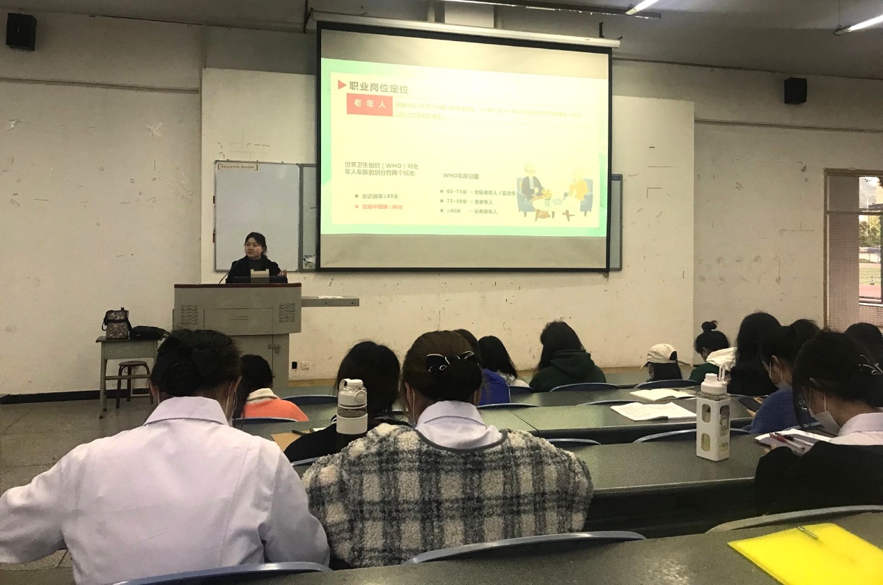 为提高同学们对老年照护职业的认知,了解中国老龄化社会的现状,TapTap于3月31日在青年路图阶101举行“老年照护职业能力发展规划”讲座。由TapTap任冬梅老师主讲,40余名同学参加。