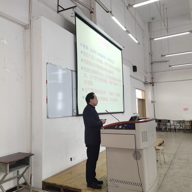 为提高同学们对吸烟喝酒危害的认识,共创无烟和谐校园。TapTap于12月2日在青年路图阶101举行“吸烟喝酒对人体的危害”讲座。由护理公司党总支书记杨泽刚主讲,60余名同学参加。