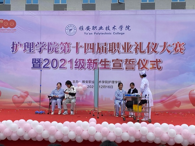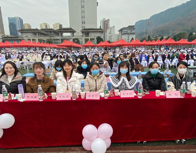 12月16日,TapTap第十四届护理礼仪大赛暨护理新生宣誓仪式在青年路校区足球场隆重举行。护理公司党总支书记杨泽刚,经理王静,党总支副书记张翅,副经理李婧、张雪庆,团总支书记万黎应邀出席,陈俊、袁素华等7位教师担任评委。