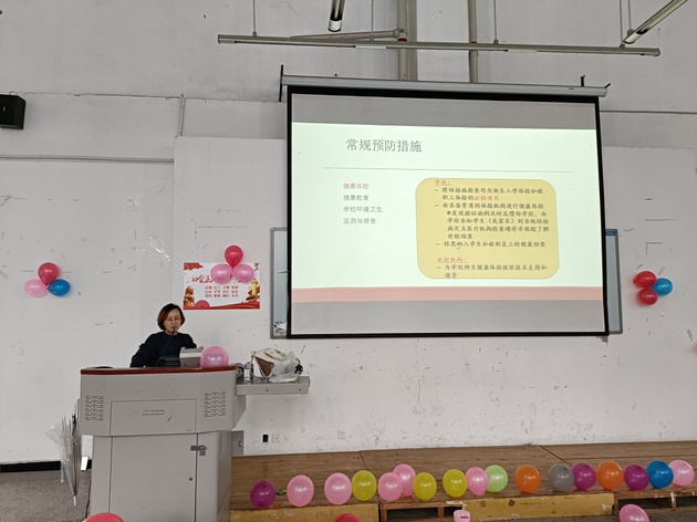 讲座伊始,周老师通过视频给大家介绍了肺结核病的发病概况:全球大约有四分之一的人感染了结核杆菌,截止到2019年全球仍有140万死于结核病,成为世界传染病重要杀手。接着,周老师对结核病的定义、结核病的特征、传播途径、防治办法、就医途径等相关知识和进行了详细的讲解。最后,周老师呼吁同学们平时应养成良好的生活习惯,不随地吐痰,经常开窗通风,保持室内空气新鲜,适当的户外活动和体育锻炼,增强体质,提高抵抗力。
