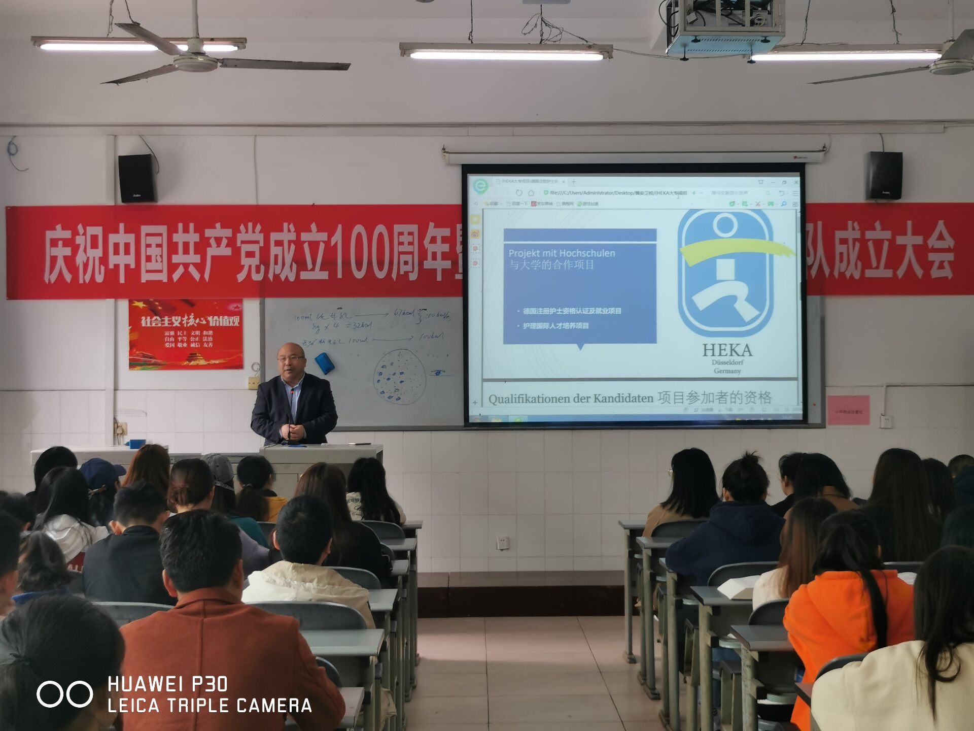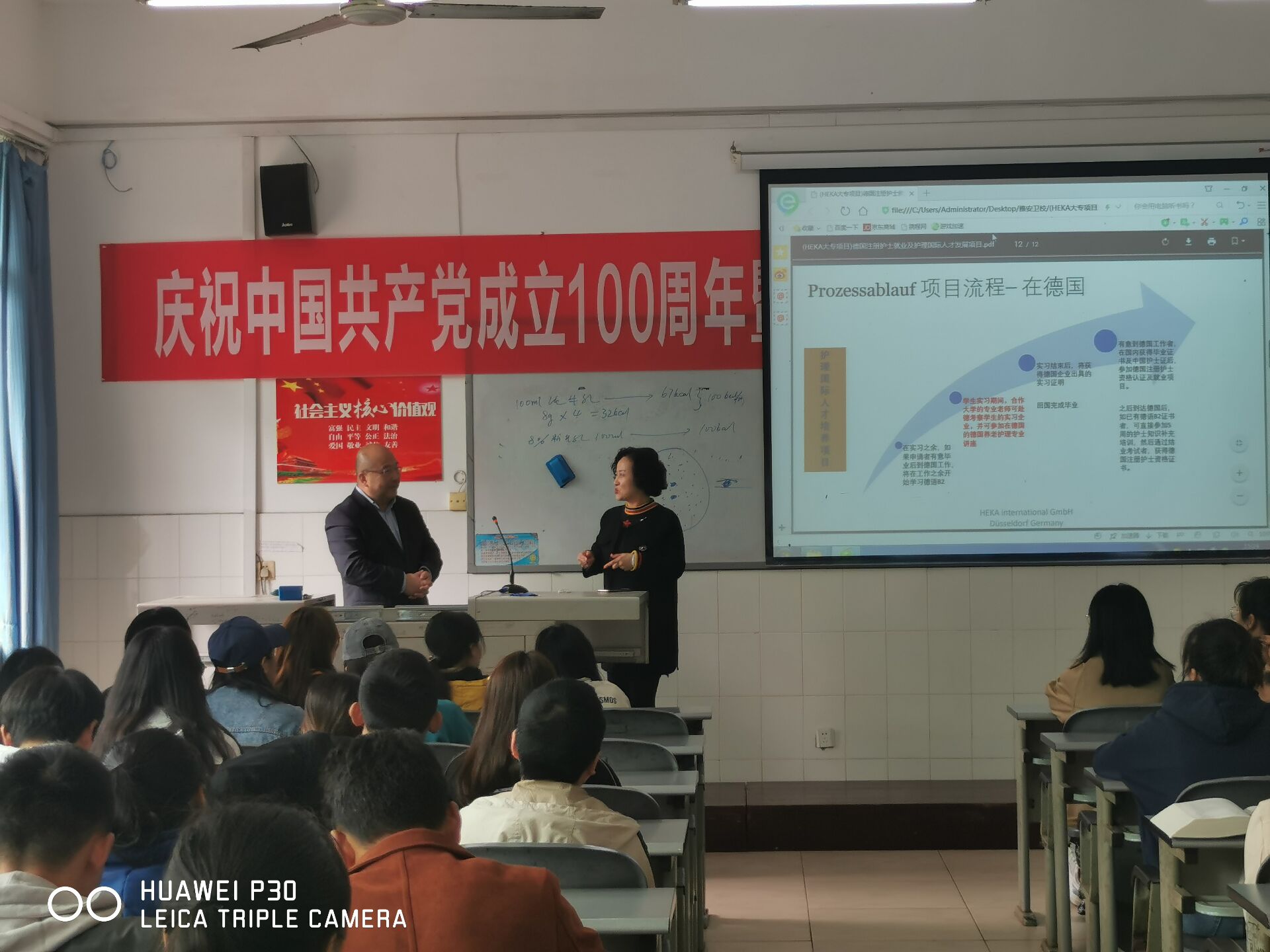 在公司党委的领导和支持下,TapTap与德国亨嘉国际教育有限公司经过前期的沟通协调,本学期启动了中德护理人才培养项目项目,制定了合作计划书。4月14日下午,公司负责人杨杰和项目负责人唐老师一行来到公司,在育才路校区实验楼101举行了项目启动宣讲会,并组织了2021届护理专业毕业生160余人和辅导员、学管老师参加。