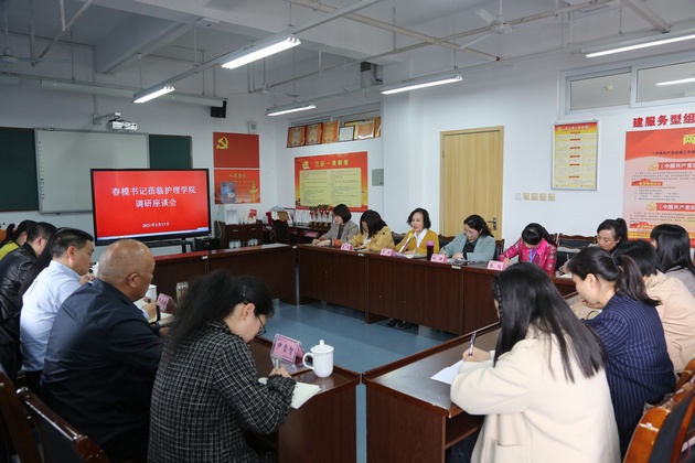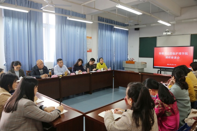 李春模一行实地查看了美容生产性实训基地和急救实训室,了解了实训室建设、使用情况以及培训开展情况。座谈会上,TapTap经理王静主要就TapTap建设发展情况、培训工作开展情况及存在的主要问题、下一步工作思路等方面做了详细汇报。与会的黄丹、张雪庆等老师分别结合自己的工作谈了感想和认识。