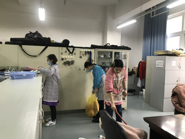 上午9点,各办公室、实训室负责人及老师准时到位,对办公室、实训室、楼道及卫生死角进行全面清扫。同时,9名党员组成的志愿服务队在爱国苑小区集中,开展“联包帮”大院卫生清扫志愿服务。