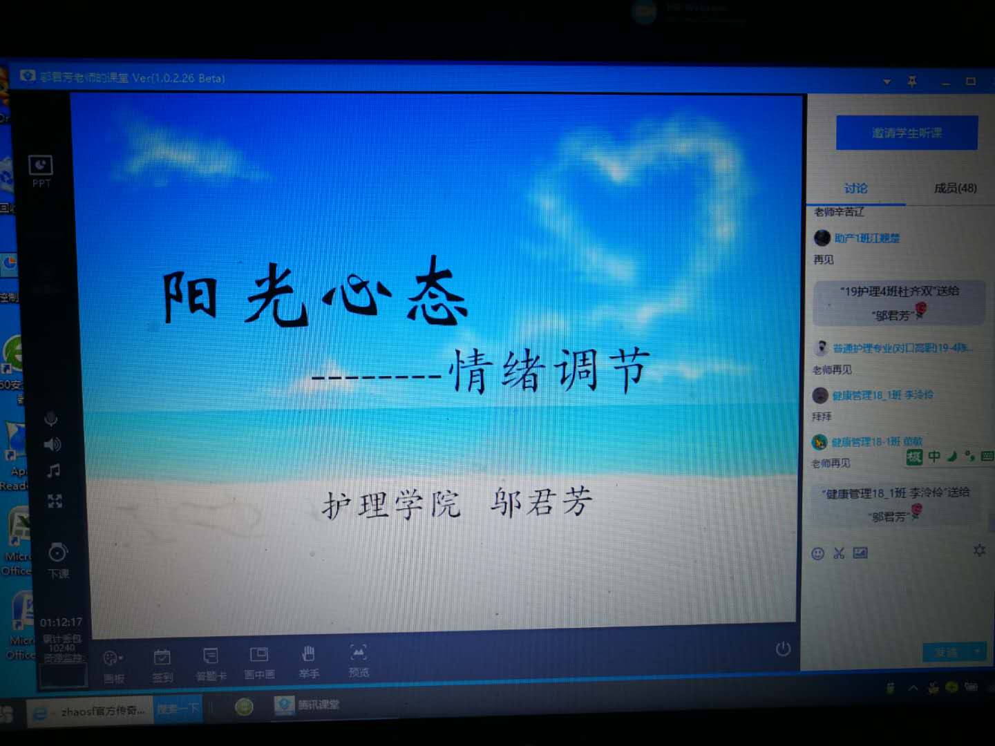 邬君芳老师分别从“潜意识谈情绪”、“孝道谈情绪”、“合理情绪疗法”和“怎样利用负面情绪增长自己的智慧”四个板块对特殊时期人们的心理健康状态认知及负面情绪调节进行了详细讲解。邬老师深入浅出的讲解,生动幽默的表达赢得大家一致好评。