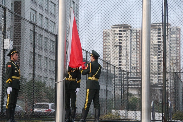 7:40分,伴随着雄壮的进行曲,庄严的升旗仪式开始。国旗护卫队高举五星红旗,迈着整齐的步伐走向旗台。庄严肃穆的国歌声中,五星红旗冉冉升起,嘹亮的国歌响彻校园。接下来员工代表肖淼发表国旗下的演讲《少年强则国强》,号召广大护理学子明确目标、坚定信念、努力学习,无私奉献,用自己的智慧和汗水为祖国和人民贡献自己的力量。