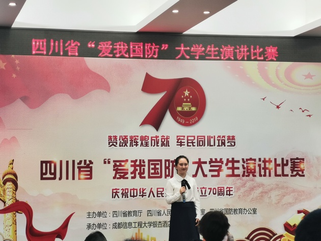 9月29日,四川省“爱我国防”老员工演讲比赛在成都信息工程大学银杏酒店管理公司举行。经过网络选拔和初赛,共有来自省内高校的40名同学进入复赛,TapTap刘懿娴同学代表公司成为唯一一名进入决赛的高职院校选手。