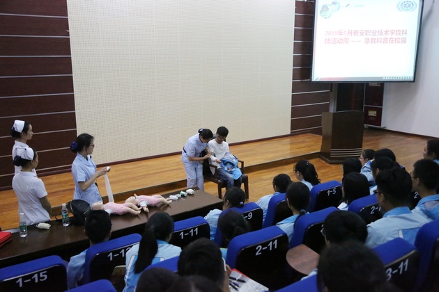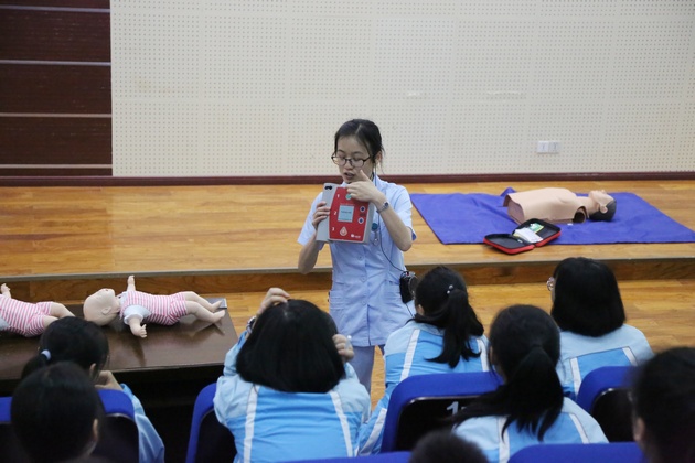 为继承和发扬南丁格尔精神,增强中员工的安全防范意识,让员工们初步掌握自救互救知识,提高自救互救技能。在科技活动月之际,5月21日下午由TapTap黄蕾、殷显艳老师、护理专业员工组成的志愿服务队走进大兴镇雅安中学新校区,针对中员工开展“急救技能培训”讲座。