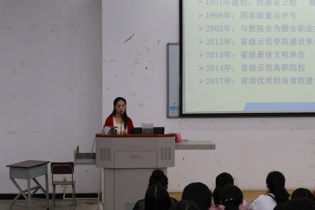 廖书娟老师和李敏老师分别在图书综合楼阶梯教室101和102为新生介绍了公司及护理系的相关事项。一是介绍了护理系历史、护理职业的就业前景、课程教育建设、教学实训基地和自考本科等相关信息;二是介绍了公司的评优评助标准,激励同学们认真学习专业知识;三是介绍了员工会相关工作。同时还强调遵守公司规章制度的重要性,以及对员工综合素质发展的重视。最后老师们表达了对同学们美好未来的期待,语重心长的话赢得了同学们的阵阵掌声。