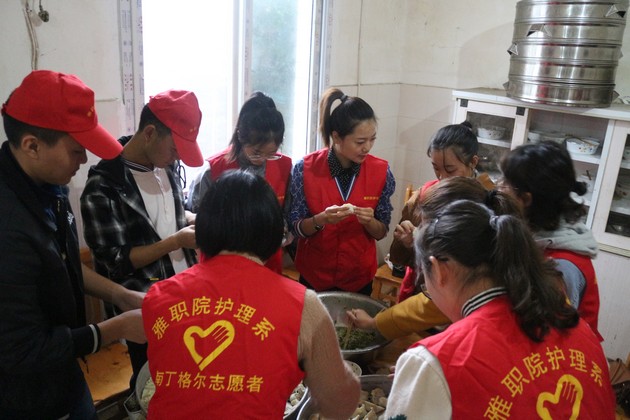 志愿活动分为三个部分:一是义诊,志愿者们为老人测量血压、血糖。二是健康宣教,老师用通俗易懂的语言向老人讲解必要的健康知识,并耐心解答老人们的提问。三是才艺表演,志愿者们精心排练的歌舞表演,给老人带去了欢乐。义诊的同时,部分志愿者在用心准备午餐,小小的饺子,深深的情感,简单的饭菜和水果饱含着暖暖的心意。最后,志愿者们和老人聊天话别,老人们对志愿者们表达了肯定和感谢。