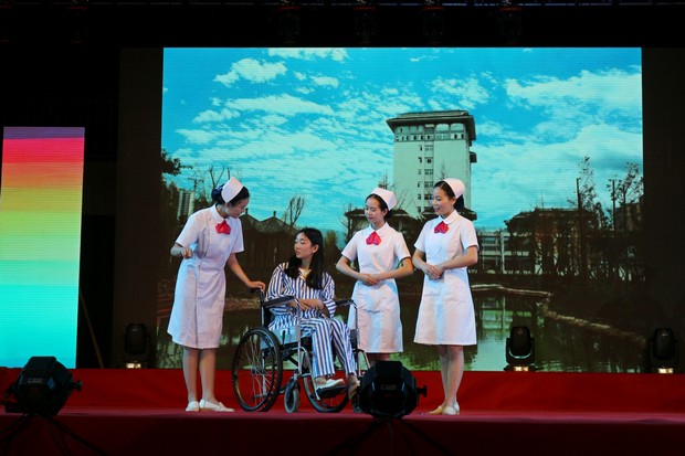 公司党委书记李春模在大会上致辞,向护理师生致以节日的祝贺,希望同学们继承和发扬护理事业的光荣传统。经理石静宣布职业教育活动周启动。晚会在舞蹈《光荣与梦想》中拉开了帷幕,在晚会正式开始后,晚会表演正式开始。新疆舞《掀起你的盖头来》让我们感受到了浓郁的民族特色;舞蹈《热血街舞》充满青春活力;情景剧《大山支交》讴歌了教师们无私奉献的精神;《礼仪展示》通过规范的形体语言体现了护士的礼仪修养以及良好的职业操守。晚会以丰富多样的节目形式,给观众带来了一场视觉盛宴。