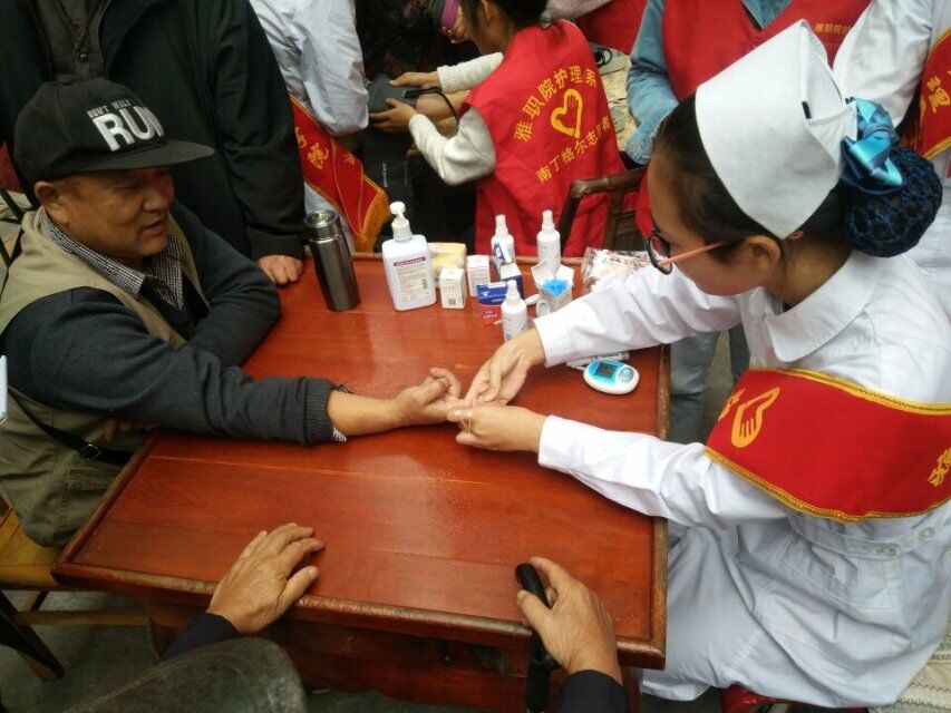 活动进行时,志愿者们迅速投入工作状态,小区居民也热烈地响应了活动的号召,义诊活动有序开展进行。在测量前,志愿者们仔细地询问了居民们的姓名和年龄,以便更好地结合居民身体状况做出准确的结论。此外,志愿者也对血糖血压数据进行了认真详细的记录,并告诉居民们如何有效改正生活中不良的饮食习惯。