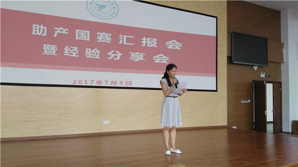 2017年7月3日下午在实训楼圆弧大厅举行第二届助产国赛汇报会暨经验分享会。参加此次分享会的有护理系主任王静、党支部书记姚婕、副主任廖书娟、副书记李敏、教研室主任陈俊、周晓琴副教授以及袁素华老师师生代表团。