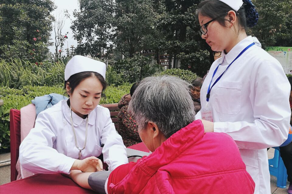 2017年3月28日,护理系党员教师王菠、黄蕾带领护理系青志协约20名同学,在第一江岸小区开展了护理系“南丁格尔”爱心义诊活动。