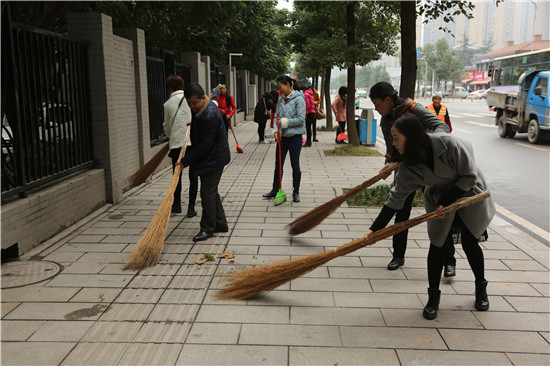 老师们沿着公司周围的街道进行清扫,发扬不怕脏不怕累的精神,在大街上扫地、捡垃圾、清理墙上粘贴的小广告及卫生死角。经过1个多小时的辛勤劳动,校园周边变得既干净又整洁。