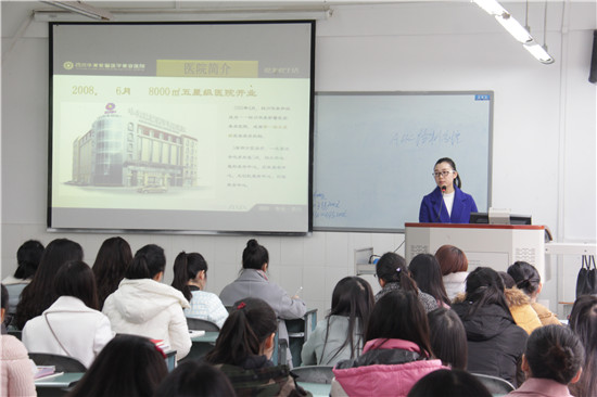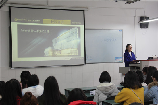 为加强与公司持续合作,12月9日13:00,成都华美紫馨医学美容医院负责人周冬琴老师在C202召开了宣传讲座。我系教师李婧、辅导员吴玉阳及15级、16级医学美容专业全体同学参加了此次讲座。
