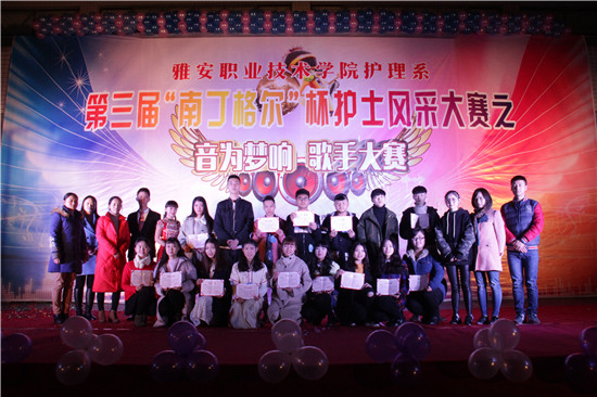 冬意渐浓,歌声悠扬。11月29日晚上六点,护理系第三届“南丁格尔”杯护士风采大赛之“音为梦想,歌手大赛”决赛在食堂门口拉开帷幕。护理系党支部副书记李敏、院团委教师王昌宇及护理系团总支书记万黎、团总支副书记吴玉阳、教师饶玲出席本次大赛并担任评委,同时上一届歌手大赛冠军刘丽君受邀担任特邀评委。公司及各系主席团代表、各协会代表应邀作为大众评审。