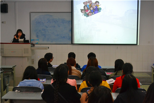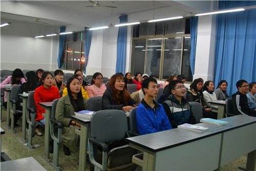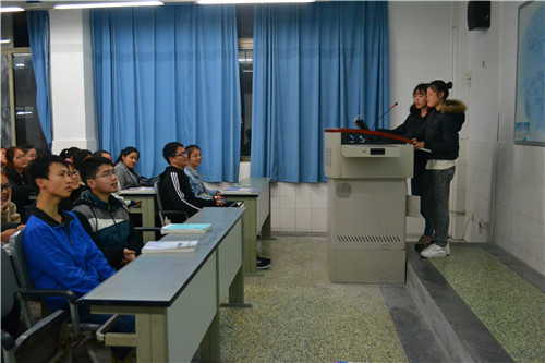 伴着悠扬的背景音乐,班会由此拉开帷幕。组织部代理部长刘诗怡饱含温情的向同学们朗诵了一篇感恩老师的优美文章,语调时而悠长、时而细腻、时而慷慨激昂。她充分地以情带声,以声带情,引发了大家的共鸣,唤起了大家对师长之爱的感动,整场活动气氛非常活跃。