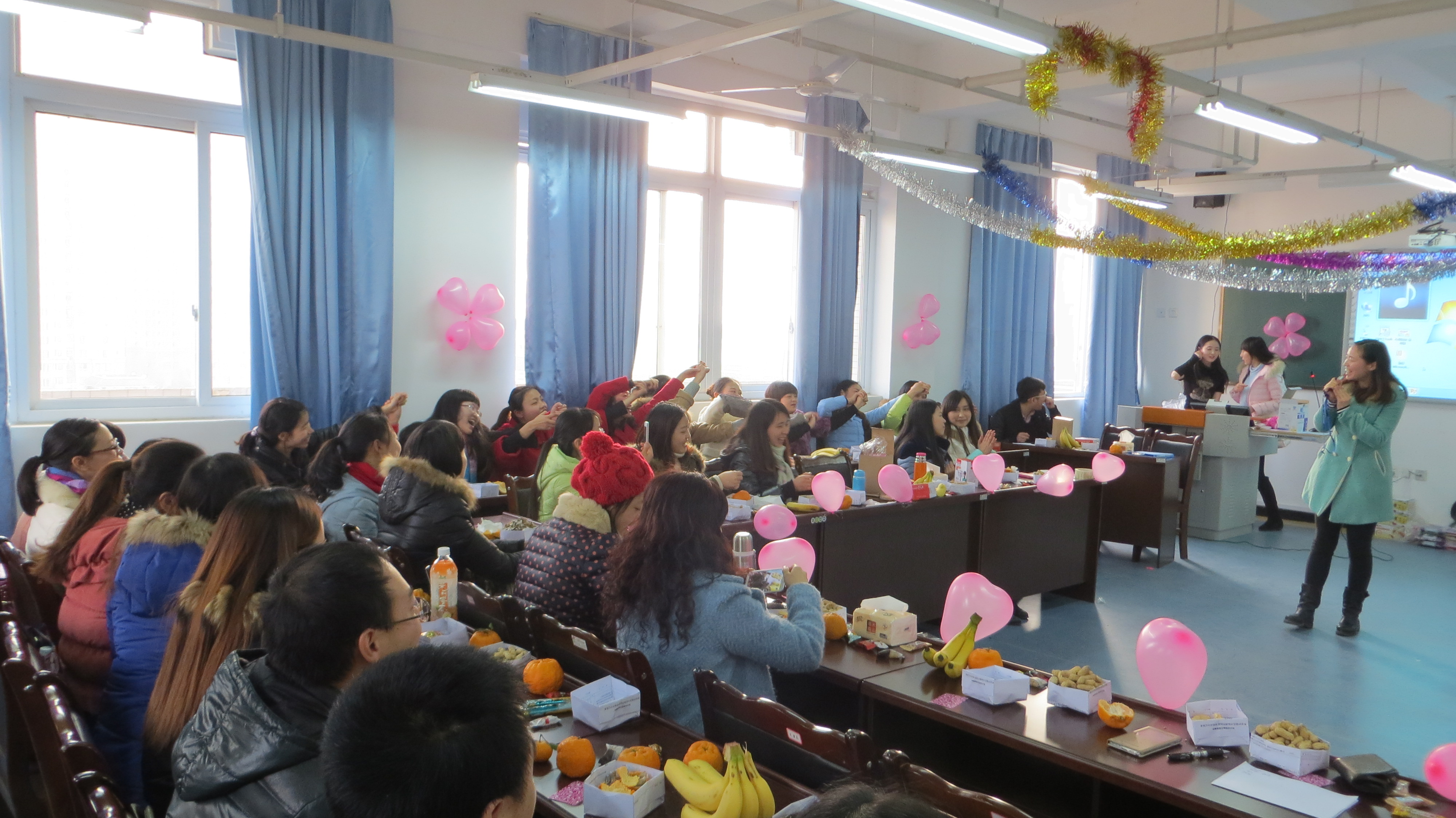为展示教职工的活力与风采,增强全系凝聚力,12月30日下午护理系2015年教职工新年联欢会在青年路校区实验实训大楼607隆重举行,全系教职员工相聚在一起共同庆祝新年的到来。联欢会由谢琳娜、闵捷两位老师主持。联欢会上,系主任王静、党支部书记郭英才对全系教职工的付出和辛勤劳动表示感谢,回顾了2014年系部取得的成绩,提出了对2015年的美好憧憬。
