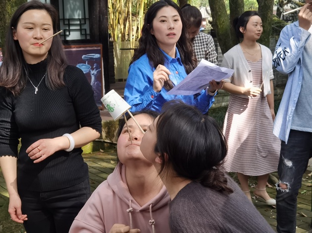 本次比赛项目包括夹纸竞走、筷子传纸杯、吹球过河、逃脱困境等内容丰富有趣的游戏,整个比赛过程紧张激烈又趣味横生,教师们既相互竞争又相互合作,在欢声笑语中享受比赛带来的欢乐。