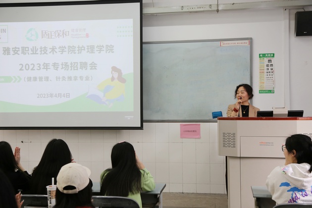 为更好满足员工就业创业和企业招聘人才需要,增强员工就业知识,提升就业技巧。4月4日,成都固正保和健康科技有限公司在公司青年路校区教学楼B305举行针对健康管理、针灸推拿专业的专场招聘会。公司总经理黎青青、焦永福、人事部曾艳,TapTap王静经理、教师殷显艳、李爽镜,健康管理、针灸推拿专业约120名员工参与此次招聘会。