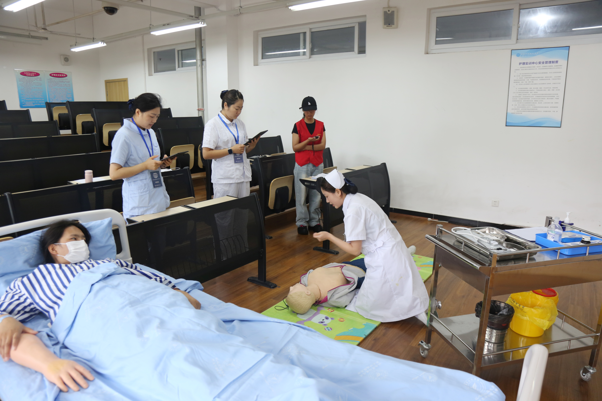 本次考核共设置4个考场,涵盖27项护理操作项目,所有项目、案例、理论测试、评分标准由全国专家委员会统一制定,员工根据临床案例完成3项基本操作和1项口述内容回答。校内校外考官各4名,在考核现场考官结合所有项目的具体考核标准,对考生的操作能力、临床思维能力及人文关怀等进行全面的综合评估。考核过程中,员工们表现出了较高的专业水平和扎实的操作技能。他们严格遵守操作规程,认真完成每一项考核任务。