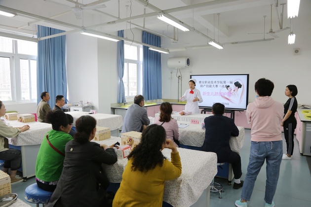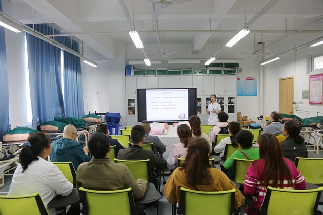 老年服务在实训楼801和803举行,由同学们展示手指操,任冬梅老师给参观者们讲解老年常识;妇幼保健在实训楼501和503进行,由同学们讲解怀孕期间的常识和新生儿脐部护理组成,通过讲解加深和改变了参观者们对怀孕及新生儿脐部护理知识的认知;职业礼仪在实训楼804,由同学们分组展示护理礼仪,体现了护理学子良好的职业风范;急救技术科普在实训楼203举行,由4位同学展示心肺复苏,黄蕾老师讲解注意事项,通过这次心肺复苏的讲解与展示,增进了大家对心肺复苏术的了解。