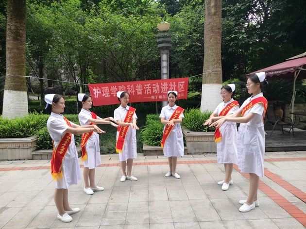 身着红色志愿服和白色护士服的志愿者们有序开展了义诊活动 。一部分志愿者负责调查回访,一部分志愿者细心的为居民测量血压,并进行了手指操和七步洗手法的讲解。志愿者热情的服务得到了居民们的一致好评。