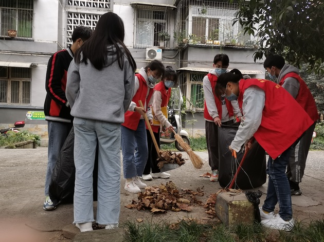 在与社区负责人对接具体工作后,志愿者在姚书记的带领下积极行动起来,对小区环境进行清扫,清理垃圾,铲除杂草,攻克卫生死角。经过2个小时的奋战,清扫后的小区环境焕然一新,受到了社区居民的一致好评。