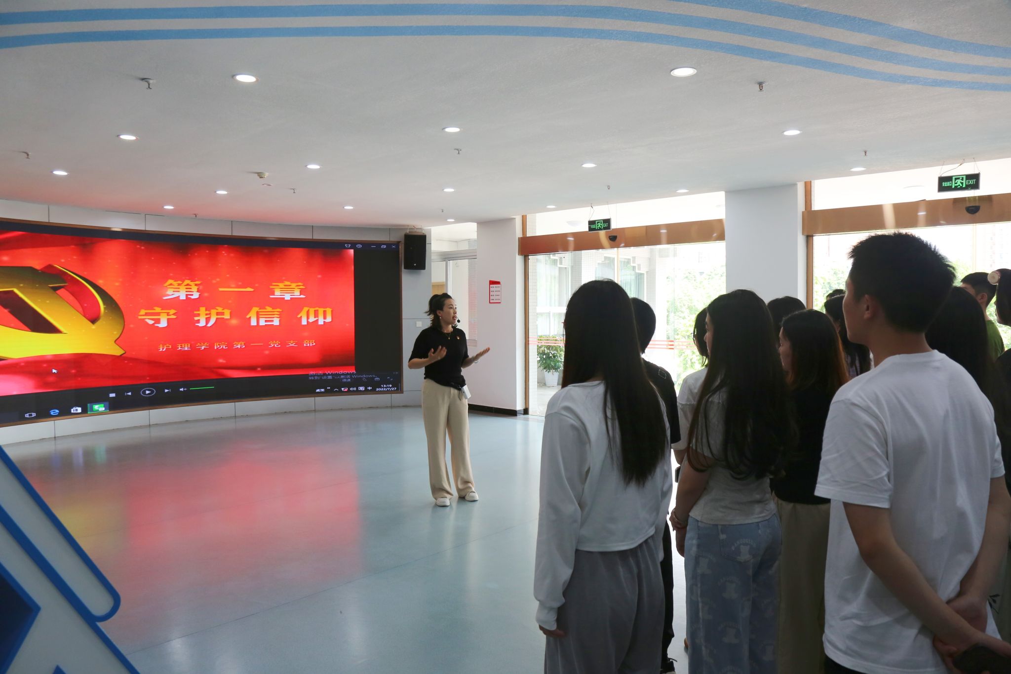 第一篇章“守护信仰”由红色微电影和现场护理器械展示组成,由护理公司党总支第一支部党员杨苓梅讲解。故事以“夹金山上的小太阳”微电影为切入点,讲述了在红军长征过程中“卫生员”这支特殊的队伍以及他们为革命胜利所做出的伟大贡献。在场学员均被小太阳所诠释的长征精神和南丁格尔精神所感动,纷纷表示要向不怕困难、不怕牺牲、百折不挠的红军战士学习。许玉贤、王菠两位老师还向大家展示了老一辈护理工作者所使用的护理器械,让大家实际感受护理前辈在艰苦条件下如何护理伤病员。
